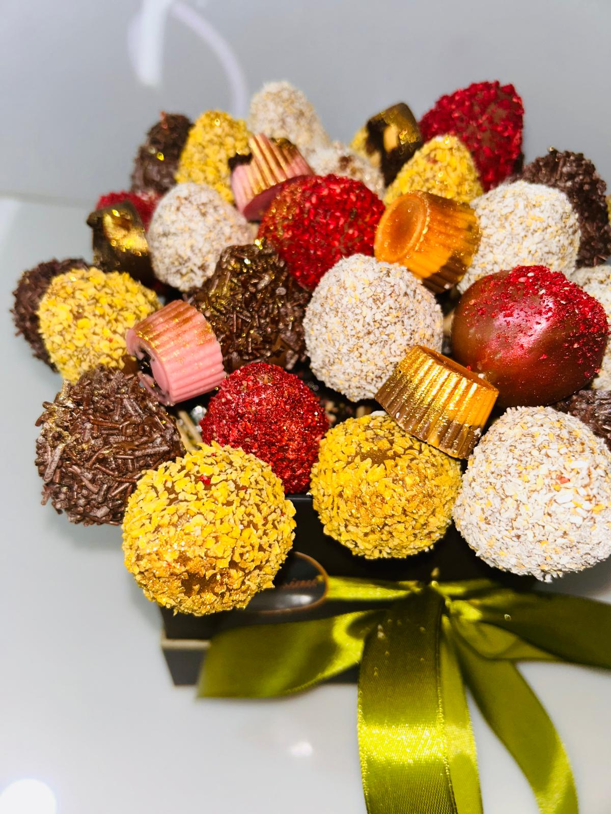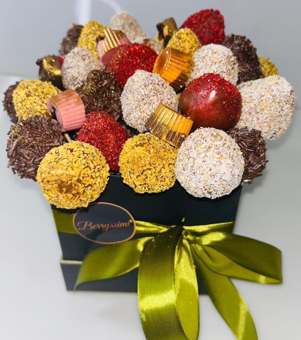Descriere: Realizat artizanal pentru a transforma orice ocazie într-un moment special, acest buchet oferă căpșuni meticulos acoperite cu ciocolată fină și decorate cu nuci și fructe liofilizate. O experiență gustativă de neuitat, ideală pentru a impresiona și a oferi o surpriză rafinată celor dragi.
