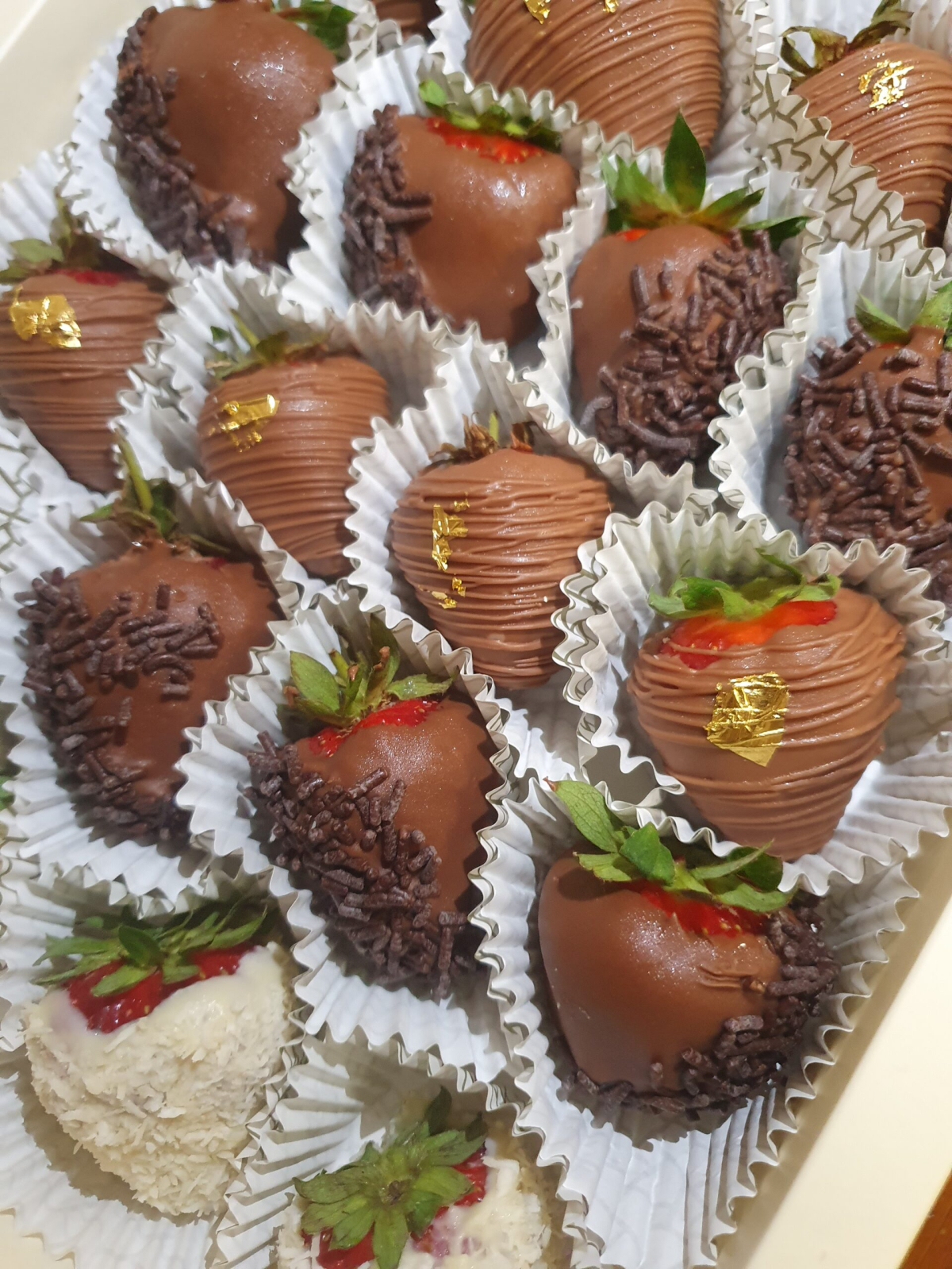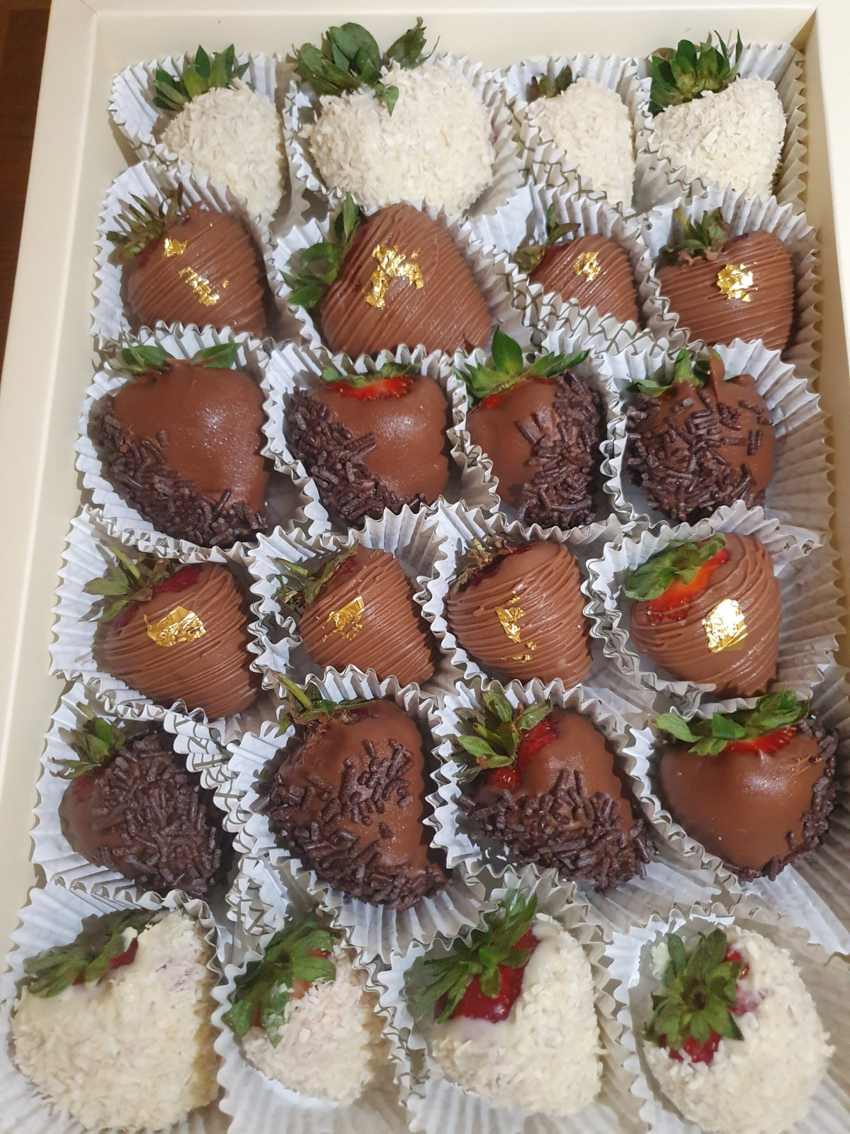Descriere: Această cutie elegantă oferă o explozie de gust și rafinament, îmbinând savoarea căpșunilor proaspete cu finețea ciocolatei premium și textura delicată a fulgilor de cocos. Decorat cu foiță de aur și accente crocante, acest desert sofisticat este alegerea perfectă pentru a oferi un moment de răsfăț și bucurie celor dragi.