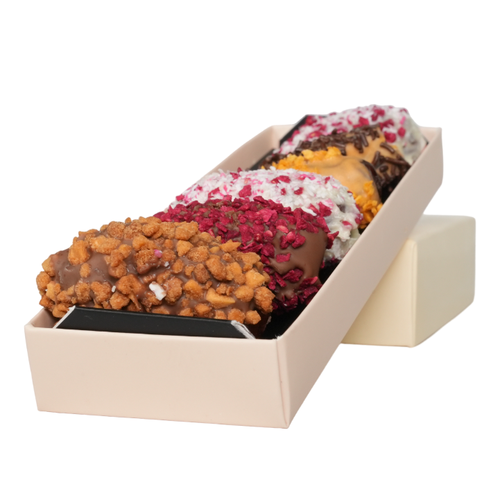 Descriere: Acest deliciu rafinat îmbină curmale suculente învelite în ciocolată premium cu prospețimea zmeurei liofilizate și crocantul nucilor caramelizate. Un desert elegant și sofisticat, este alegerea perfectă pentru momente de răsfăț sau un cadou gourmet special.