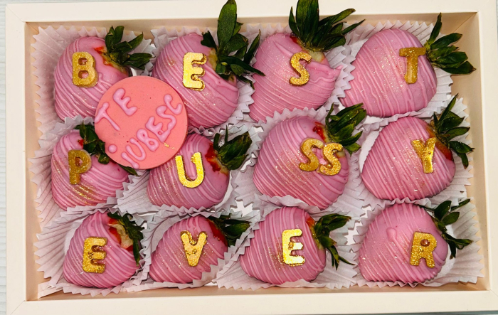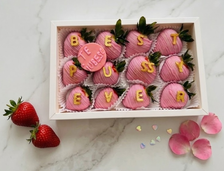 Descriere: Această cutie unică și amuzantă conține căpșuni proaspete acoperite cu ciocolată fină și decorate cu litere aurii care formează mesaje jucăușe. Este combinația perfectă de dulce și surpriză, ideală pentru a aduce un zâmbet pe buze la orice ocazie specială.