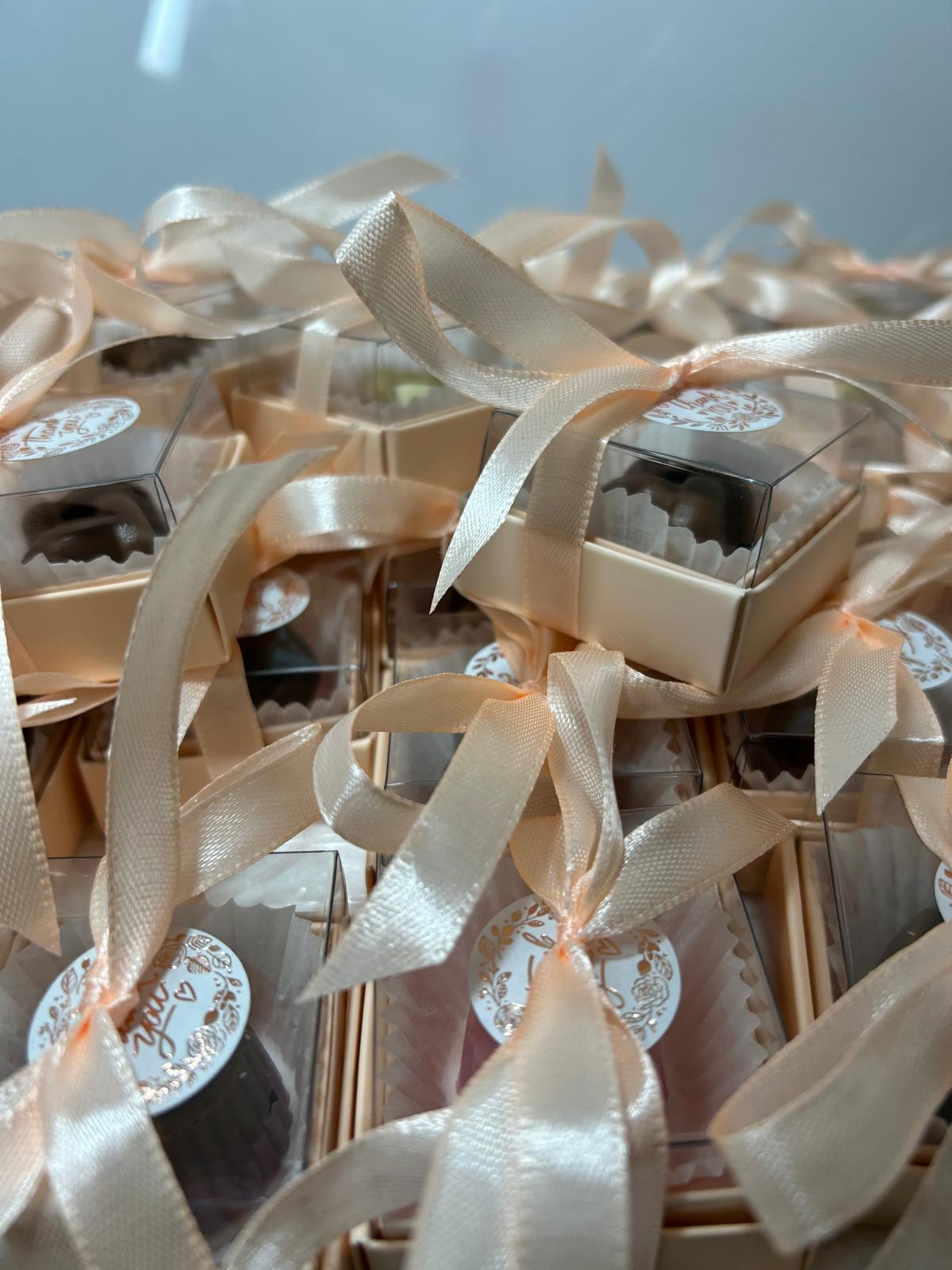 Descriere: Transformă fiecare moment într-o amintire dulce cu această mărturie rafinată, ce ascunde o figurină din ciocolată fină realizată manual. Ambalată elegant cu fundiță satinată și un mesaj de mulțumire, este gestul perfect de recunoștință pentru nunți sau botezuri, rămânând în sufletul invitaților mult timp după eveniment.