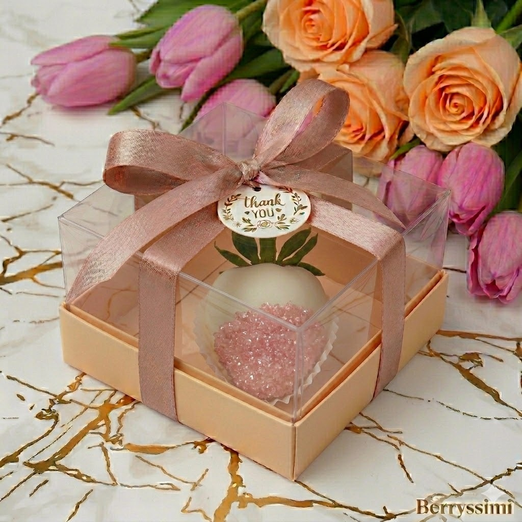 Descriere: Transformă evenimentul tău într-o experiență memorabilă cu aceste mărturii fine din căpșuni proaspete, îmbrăcate în ciocolată albă și decorate cu perluțe delicate. Elegant ambalate și personalizabile, sunt detaliul unic perfect pentru a oferi un dar dulce și rafinat invitaților la nunți, botezuri sau aniversări.