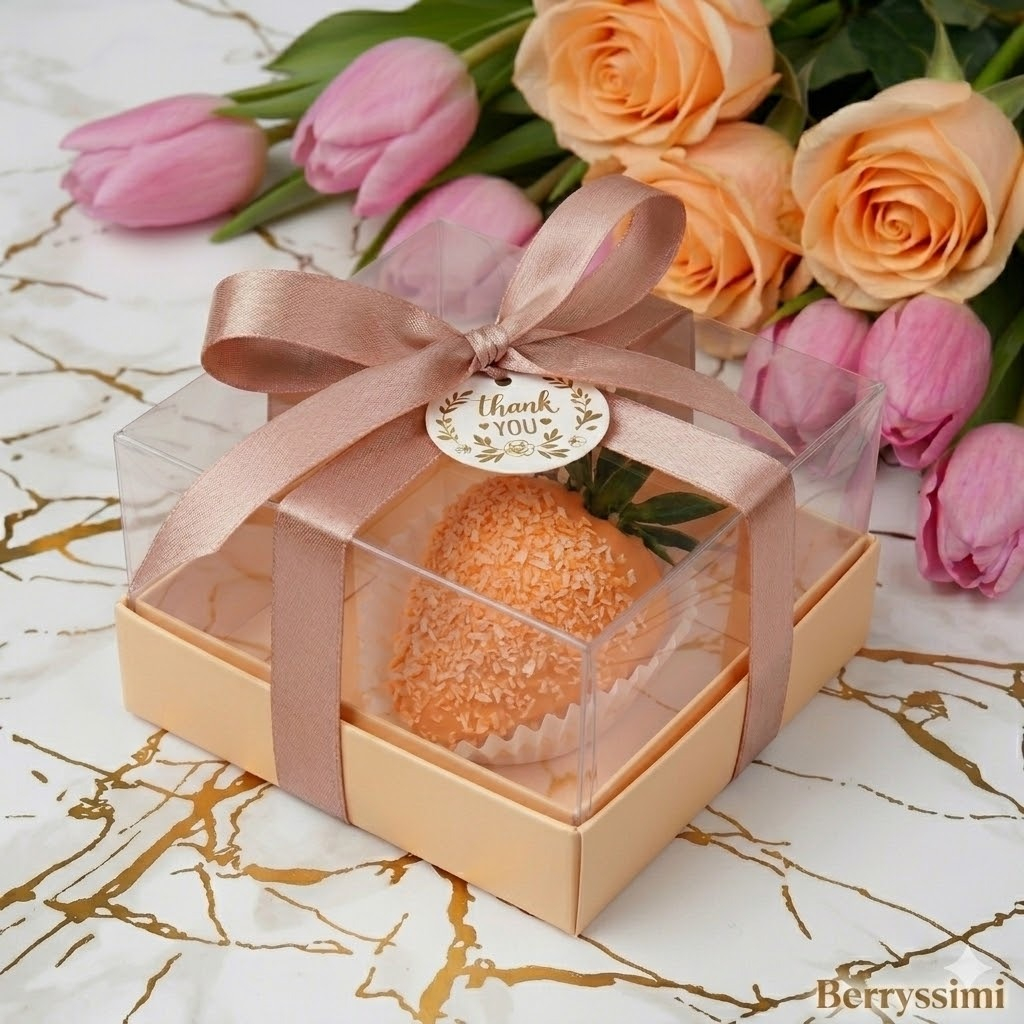 Descriere: Transformă evenimentul tău într-o experiență memorabilă cu aceste mărturii fine din căpșuni proaspete, îmbrăcate în ciocolată premium și decorate cu detalii delicate precum portocală liofilizată și aur. Elegant ambalate și personalizabile, sunt simbolul perfect al rafinamentului pentru a oferi un dar de neuitat invitaților tăi.