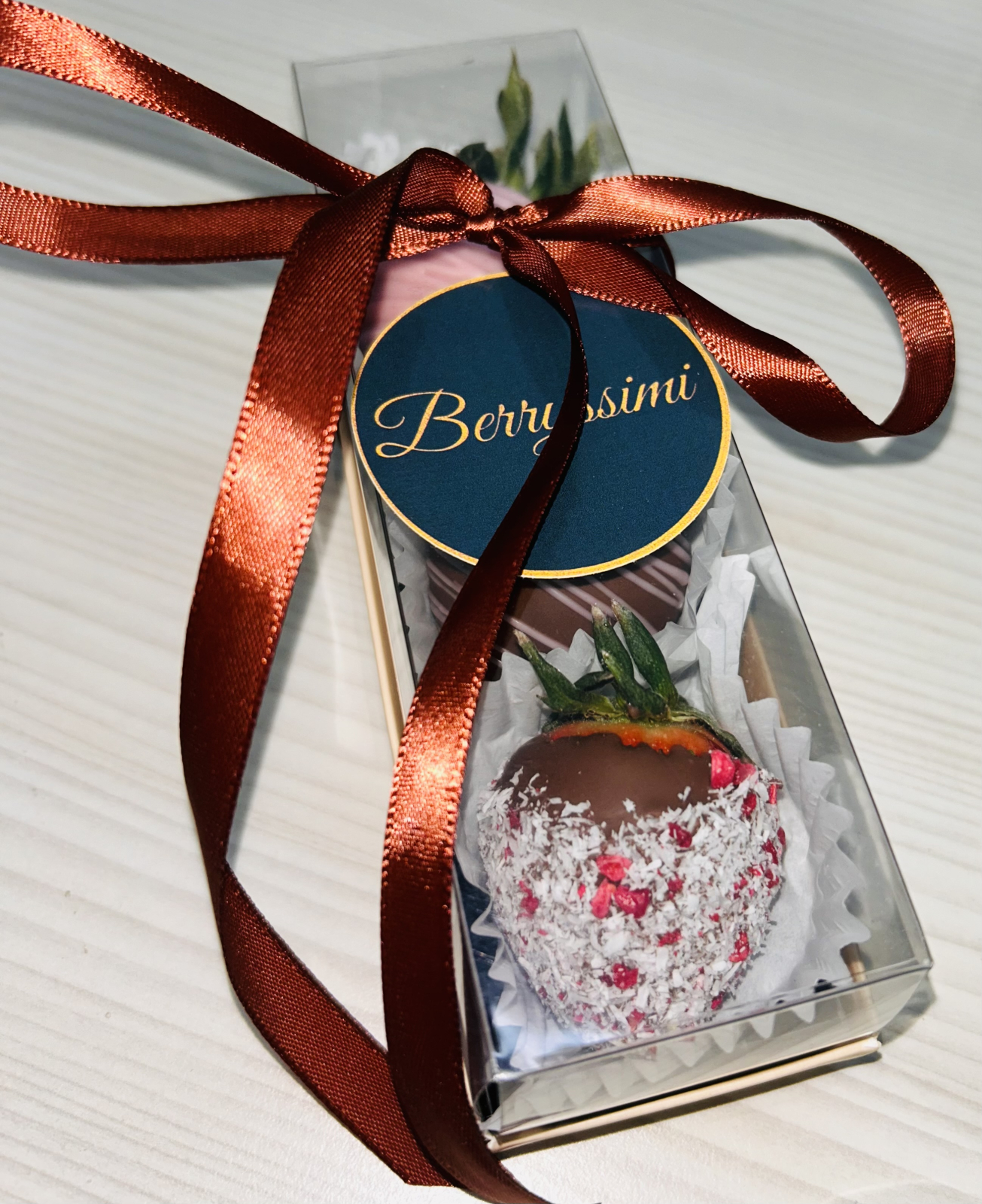 Descriere: Transformă evenimentul tău într-o experiență memorabilă cu aceste mărturii fine din căpșuni proaspete, îmbrăcate în ciocolată premium și decorate cu detalii delicate. Un simbol al iubirii și rafinamentului, aceste delicii personalizabile sunt detaliul unic perfect pentru a oferi un cadou de neuitat invitaților la nunți, botezuri sau aniversări.