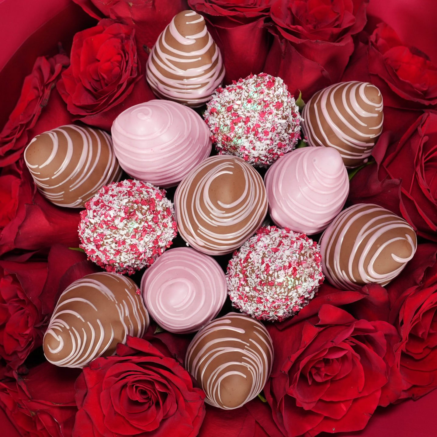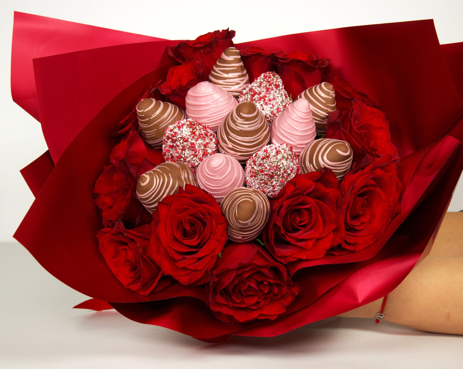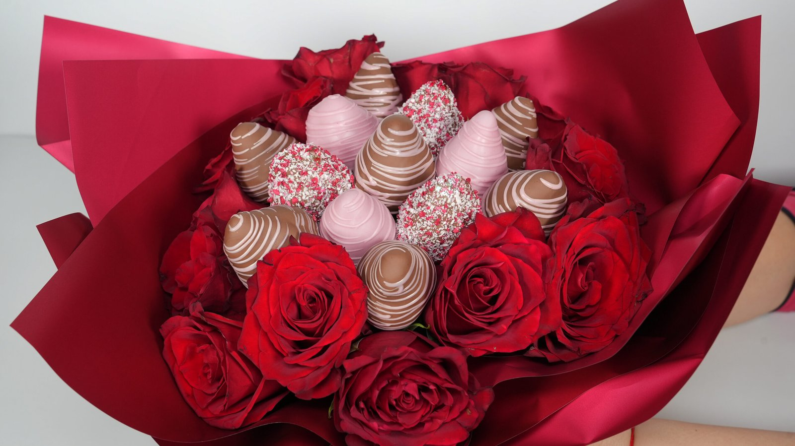 Descriere: Îmbinând romantismul trandafirilor roșii catifelați cu savoarea irezistibilă a căpșunilor proaspete în ciocolată fină, acest aranjament luxos oferă o experiență vizuală și gustativă de neuitat. Este cadoul spectaculos ideal pentru a transmite iubire și apreciere, impresionând prin rafinament și detalii memorabile.
