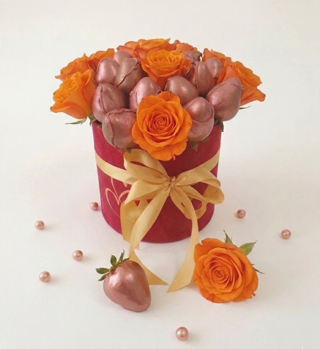 Descriere: Lasă-te cucerit de eleganța și gustul irezistibil al buchetului „Velvet”, unde căpșunile proaspete, suculente, sunt învelite în strat fin de ciocolată cremoasă Callebaut. Cu o prezentare premium și detalii rafinate, este experiența senzorială unică ideală pentru a surprinde pe cineva drag sau pentru a-ți răsfăța simțurile.